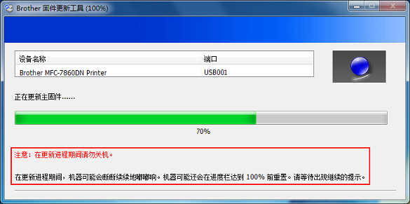 1、固件更新时,brother设备需连接在可正常打印的WIN 7系统计算机上。
