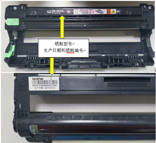 3,兄弟正品硒鼓外壳都有兄弟公司的商标,硒鼓型号,生产日期,编号。