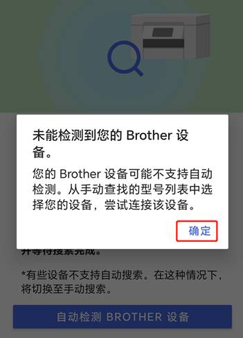 7,Brother Mobile Connect开始WI-FI设置,查找附近设备,请点击“自动检测brother设备”按钮;