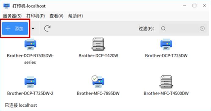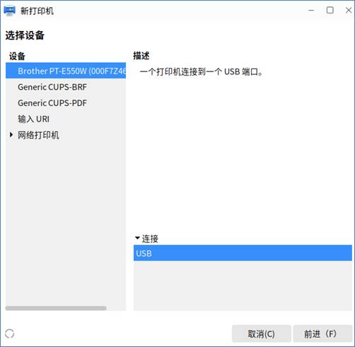 6、依次点击设备--添加打印机和扫描仪--添加。选择需安装的、已经连接到USB的打印机或同一局域网络中的打印机,点击前进,完成安装。