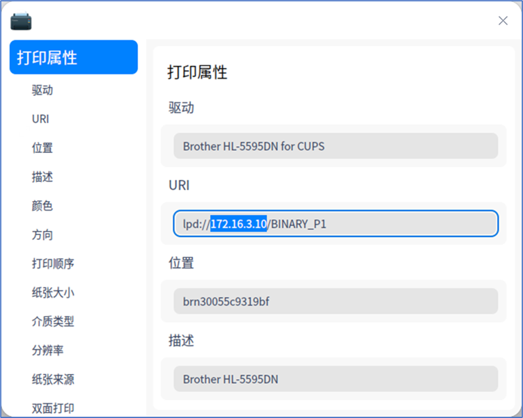 B,打印属性中可以看到打印机所安装的所对应型号的打印驱动,确认没有型号错误,然后在URL栏目中,将中间部分内容修改为打印机的IP地址