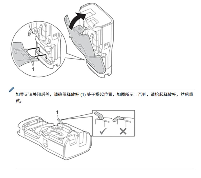 3,确保后盖挂钩(1)正确插入,然后关闭后盖。